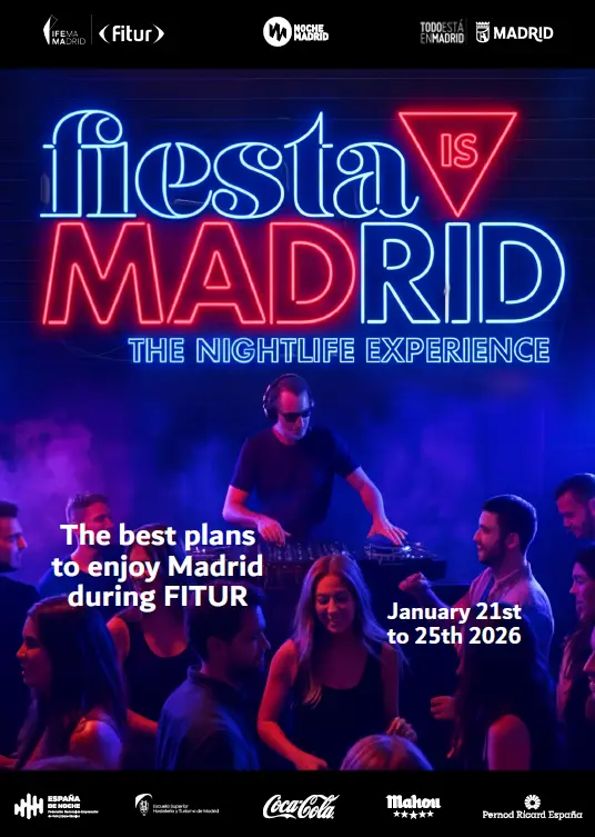 La campaña Fiesta is Madrid, que NOCHE MADRID desarrolla anualmente durante la feria cuenta también con la ayuda del área de Turismo de la Delegación de Cultura, Turismo y Deportes e IFEMA/FITUR.